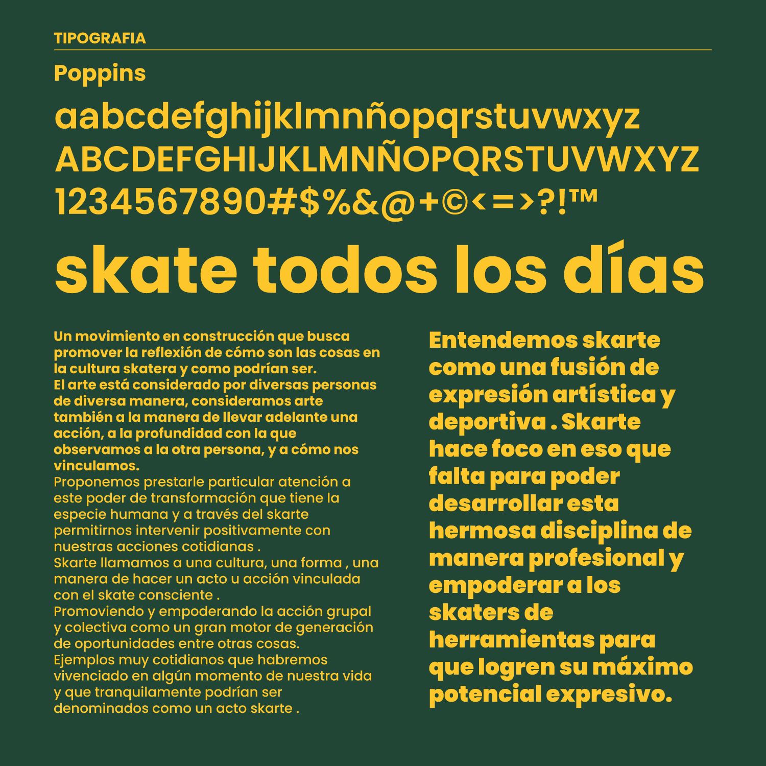 El programa de identidad de Skarte, creado para el superpark techado de Chapadmalal, es una fusión integral entre la cultura del skate, el arte y el impacto social. Esta identidad visual busca romper paradigmas y fomentar una transformación continua, promoviendo una mirada holística y un crecimiento colectivo. Skarte no es solo una marca, sino un movimiento en construcción que invita a reflexionar sobre cómo es y cómo podría ser la cultura skatera, destacando el poder de la creatividad, la conexión humana y la acción consciente como motores de cambio positivo.”