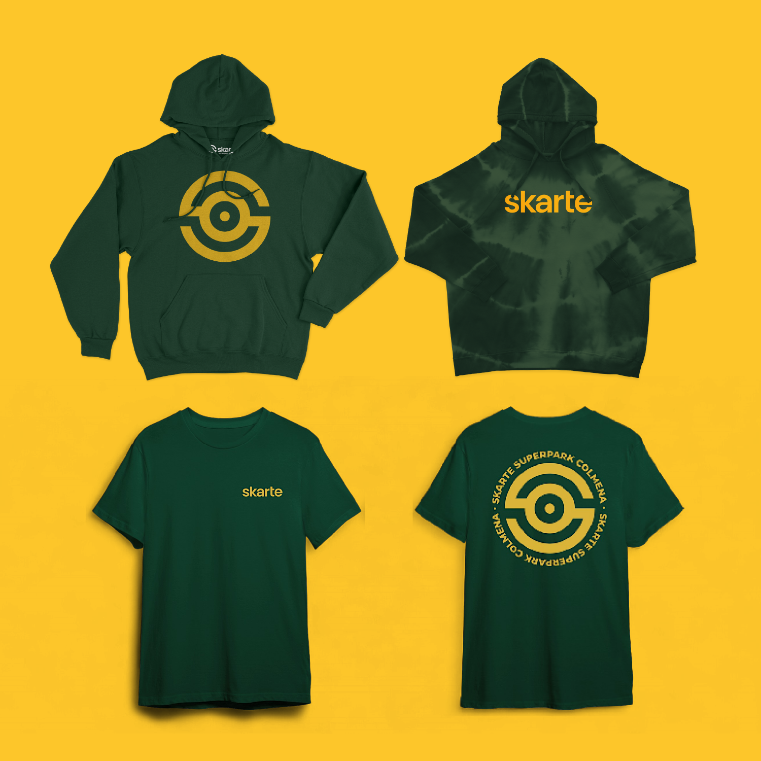 Desde una perspectiva técnica, la identidad visual de Skarte se construye sobre una paleta de colores contundente y un sistema de elementos geométricos inspirados en la estructura de un panal de abejas. Este enfoque no solo refuerza la coherencia visual de la marca, sino que también permite articular un sistema de comunicación versátil y cohesivo. La metáfora de la colmena simboliza una comunidad en constante actividad y colaboración, haciendo que cada aplicación de la identidad visual refleje el espíritu colectivo de Skarte, integrando armoniosamente estética, funcionalidad y simbolismo.